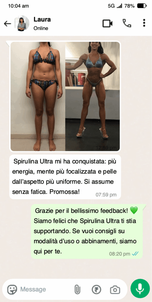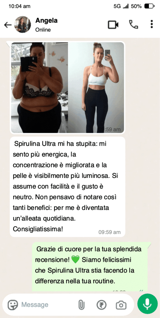 “Se il tuo obiettivo è una pancia più piatta e meno fame nervosa, Spirulina Ultra è una scelta furba: supporto metabolico, energia più stabile e una routine in 2 step che si incastra nella giornata. Piccoli gesti, grandi differenze.”